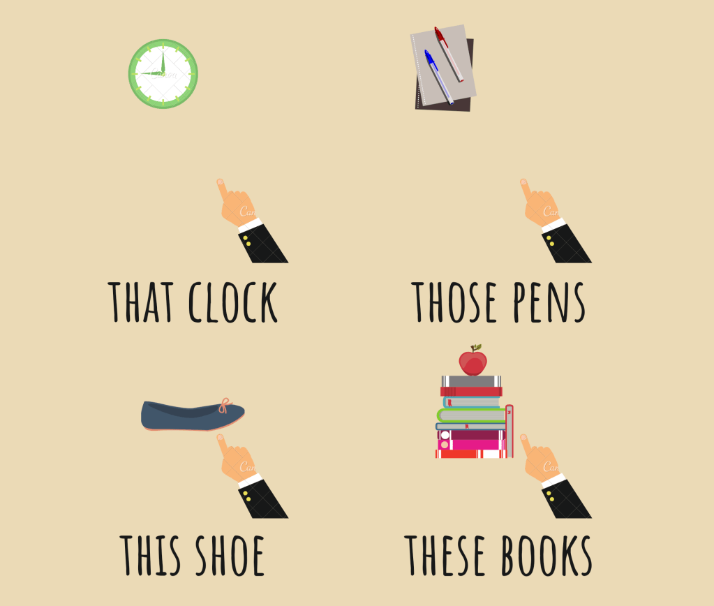 Keempat kata ini disebut demonstrative adjectives. Fungsinya untuk menyatakan posisi. This dan these artinya “ini”. Dengan begitu, keduanya digunakan untuk menunjuk objek yang dekat. Sebaliknya, that dan those artinya “itu”, digunakan untuk menunjuk objek yang jauh. Akan tetapi, this dan that digunakan untuk menunjuk objek tunggal. Di sisi lain, these dan those digunakan untuk menunjuk objek jamak. This dan that diikuti to be is, sedangkan these dan those diikuti are. Kalau masih bingung, kamu bisa ingat-ingat gambar di bawah ini dan membaca contoh kalimatnya.